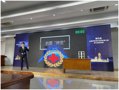 黄殿武老师指导的董才权同学、董洪晶老师和刘德军老师分别以自主命题《抗震神变---抗震变形缝》、《建筑减隔震小知识》和《桥梁抗震记》进行了精彩的科普讲解。凭借扎实的理论功底和良好的精神风貌,董洪晶老师和刘德军老师分别获得了大赛三等奖,董才权同学获得了优胜奖。