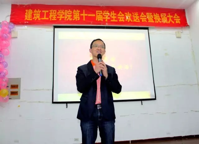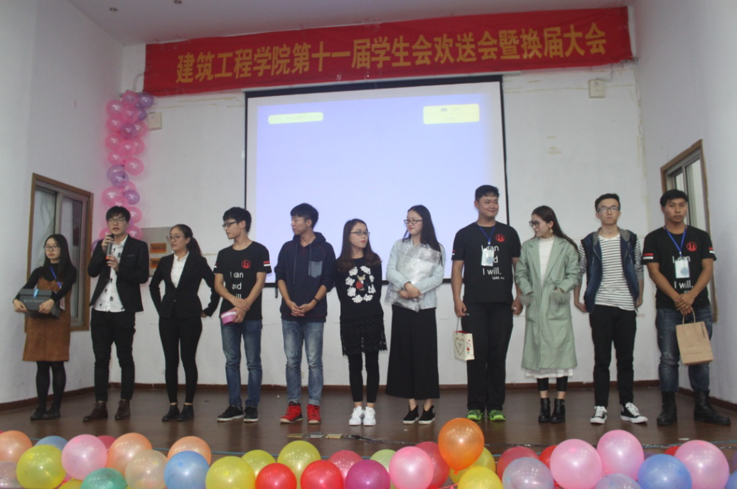 换届大会的最后,王辉书记进行了发言,讲述了他来到建工学院后与学生会的种种,肯定了学生会对于学院的意义,提出了学院工作透明化的方针,并强调了学习是第一要务,提醒学生会干事们不要因为工作耽误了学习并向所有学生会成员表示:“建工学院永远是你们的家。”欢送会也在目送各位领导老师的离场之后正式开始。换届大会结束之后,应邀前来的老师先行离场,而学生们则留下来举行了欢送会。首先是文艺部表演的歌舞节目《百鬼夜行》。其中红遍网络的舞蹈“极乐净土”和PPAP更是将欢送会的气氛推向了高潮。演过后的小游戏更是让新成员们迅速打成一片,会场内笑声此起彼伏。欢送会结束之后,各部门纷纷在台上拍照留念,留下这一美好的瞬间。此次建工学院学生会换届大会的顺利召开,为学院的学生会注入了新的活力,也调动了大家做事的激情。新一届的学生会成员纷纷表示将不负大家的期望,为学院团委学生会的工作尽自己最大的努力。