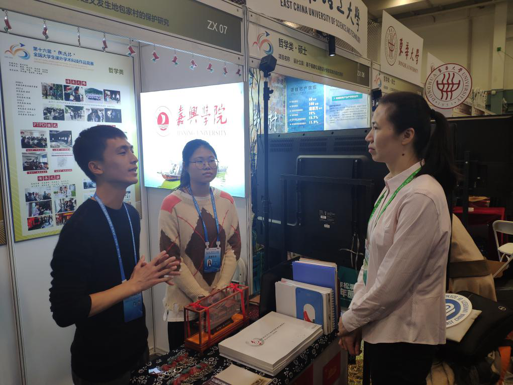 团省委副书记周苏红、校党委副书记严从荃全程参与此次 “挑战杯”竞赛终审决赛。赛事期间,两位领导分别来到作品展位前看望参赛团队,仔细听取参赛学生介绍项目内容,并与参赛师生进行亲切交流,为他们加油鼓劲。