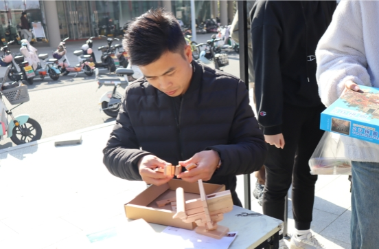 为传播中国传统榫卯结构的文化,开展传统建筑文化宣传活动,2023年12月7日线上娱乐城 团委学生会在梁林二期食堂广场举办“走近榫卯”主题活动。