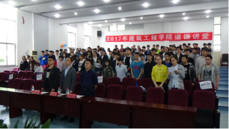 54日下午,2017道德讲堂建工学院专场活动在越秀校区第四报告厅举行。活动以莫等闲,白了少年头,空悲切为主题。建筑工程学院党委副书记王辉、校党委宣传部有关负责人、建筑工程学院团委负责人以及学院师生代表共计200余人参加了此次活动。