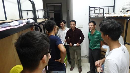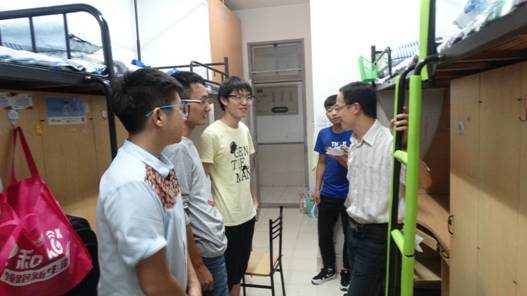 当晚,建工学院党政领导和各专业、研究所负责人分头前往新生集中居住的公寓和宿舍,与来自祖国四面八方的新同学进行交流与互动,了解他们的生活情况,向他们的到来表示欢迎和问候。