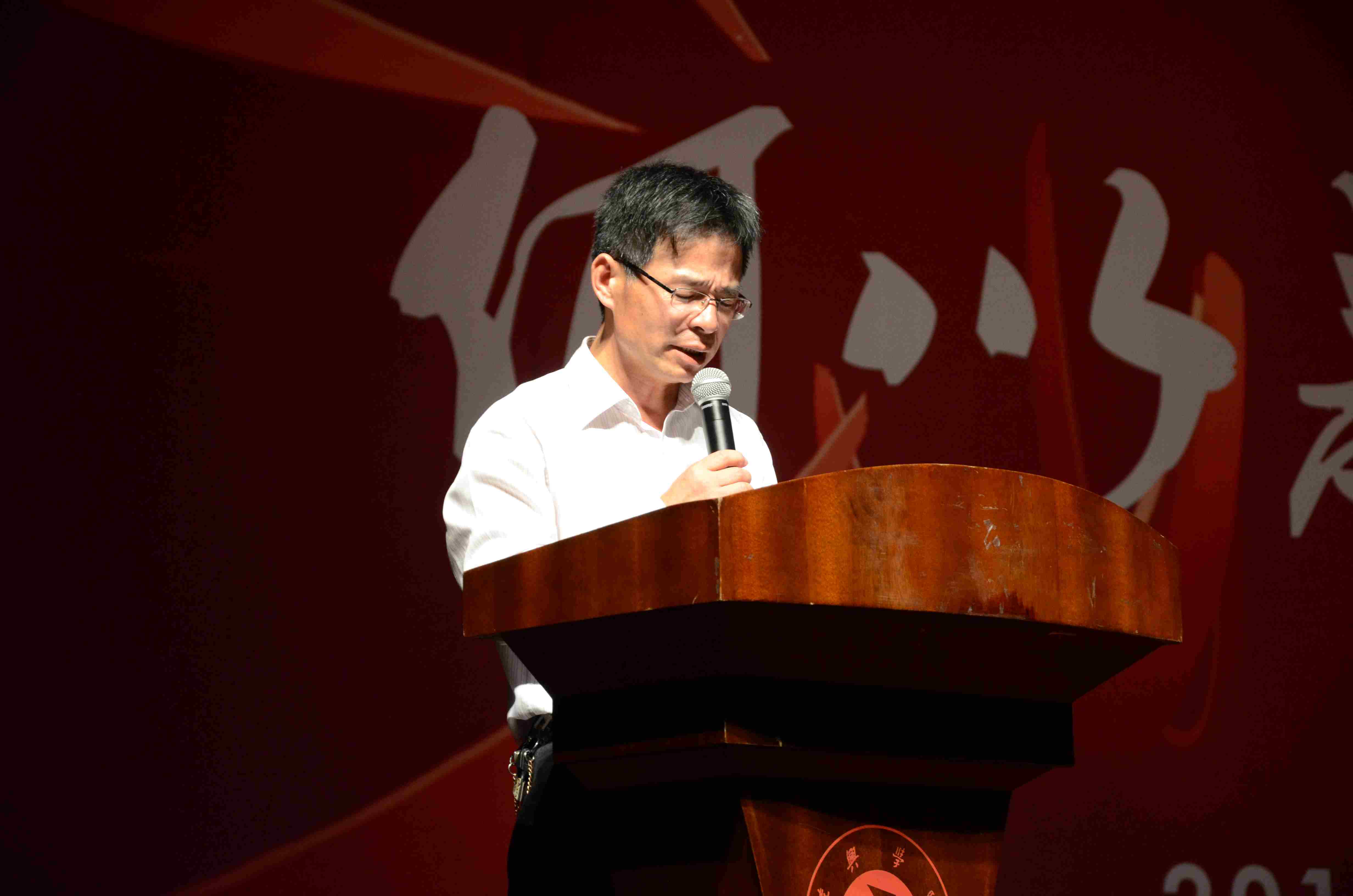 经过充分的前期准备,这一场青春盛会已经酝酿成熟即将震撼开场。晚会前循环播放的建环111班以及工管111班的毕业视频为这场毕业季晚会渲染了浓厚的离别情绪。那些出现在镜头里如此熟悉的场景,总能勾起你内心深处那一抹浓厚的伤感之情。说好不见不散,说好好好说再见。所以,全场座无虚席,这一场深情的告别,这一次盛会,我们依然要在一起。19:00晚会正式开始。全体起立,奏响国歌。整齐雄浑的歌声击打着每一颗热血沸腾的心,这一刻每个人的心都紧紧联系在一起。接下来,王辉老师发表讲话,表达了对毕业生的祝福。在蒋元海老师宣读完表彰决定以及优秀毕业生和考研录取的名单后,优秀毕业者以及考研成功的代表便上台领奖。教师代表赵全振致辞,对毕业生表达了希望和鼓励。学生代表嵇洁发言,对大学生活进行了总结,那份对大学生的感激和留恋之情溢于言表。老师们对毕业生的祝福视频掀起了晚会的第一个高潮。那些熟悉的面孔,那些陪伴着度过一个又一个春夏秋冬的他们。现场欢呼声此起彼伏,每一个亦师亦友的面孔,每一句窝心的祝福,都牵动着我们敏感的心情。