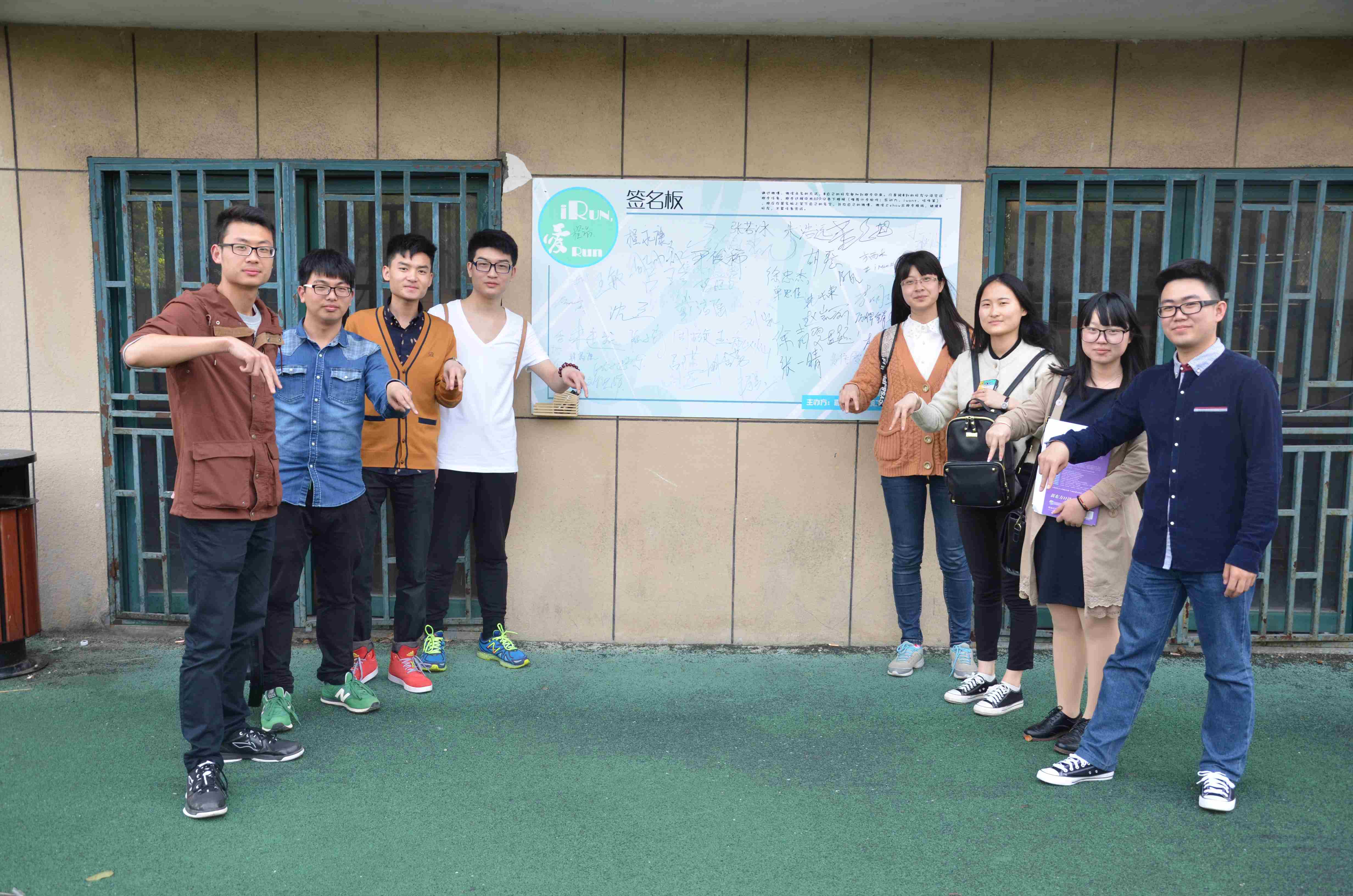 三走系列活动之"iRun,爱Run"启动仪式在越秀田径场隆重举行。届时参加活动的老师有学工办主任牟威老师、院团委程永康老师,学工办方雨禾老师。“iRun,爱Run”是建工学院响应三走热潮而组织的活动,通过微博、微信点名的方式,@自己的好友参加到跑步中来。凡是被@到的好友必须完成跑步任务,跑步过程中用APP记录下路程,跑后在签名板上写下自己的名字,并在自己的微博、微信上show出跑步路线,继续@好友,才算任务完成。