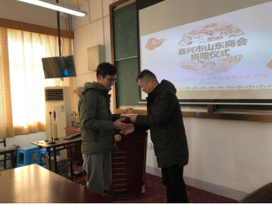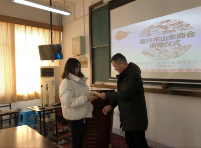 在建工楼319会议室举行了“嘉兴市山东商会捐赠仪式”暨受助学生恳谈会。院长马嵘老师、院党委书记费锦红老师、院党委副书记王辉老师、学工办主任刘静老师、学工办曹俊老师,及9名受资助的同学参加了捐赠仪式及恳谈会,捐赠仪式由党委副书记王辉老师主持。
