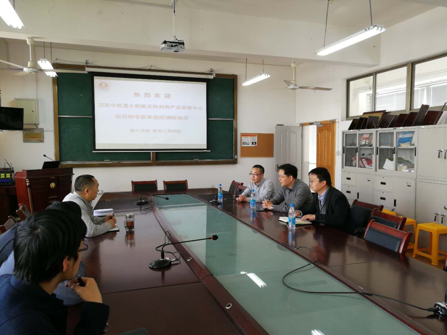 4月17日,国家中低温太阳能光热利用产品质检中心沈斌主任、韩雷涛副主任、徐永锋博士一行来线上娱乐城 建环系调研指导。建筑环境与能源应用工程系主任阳季春和相关教师与来宾在319会议室进行座谈交流。(阳季春 供稿;孙德发 审稿)