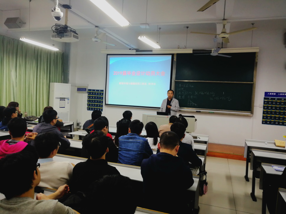 2018 1022日下午1500,建环系于教二B202教室举行2019届建环专业毕业设计动员会。动员会由系主任阳季春老师主持,建环系全体教师参加。阳季春老师强调了毕业设计的重要性,公布了毕业设计的时间安排,并具体安排了毕业设计各步的具体要求。(谷志攀 供稿;孙德发 审稿