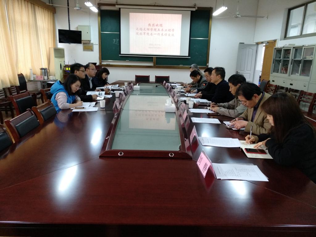 327日,无锡太湖学院土木工程学院副院长张军一行4人来建工学院调研。建工学院院长马嵘、副院长孙德发土木系、工管系、实验中心、三办负责人参加调研座谈。