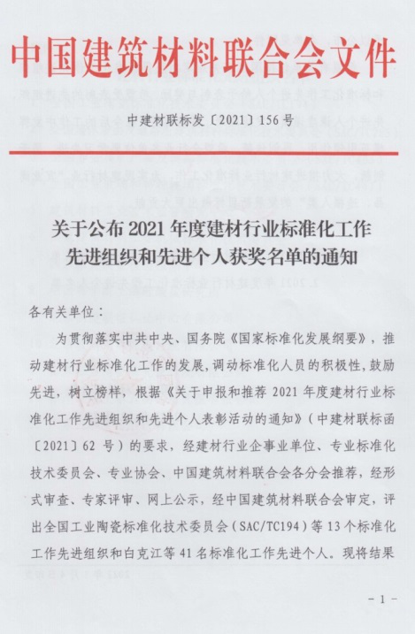 日前,中国建筑材料联合会公布了2021年度建材行业标准化先进组织和先进个人获奖名单,我校线上娱乐城