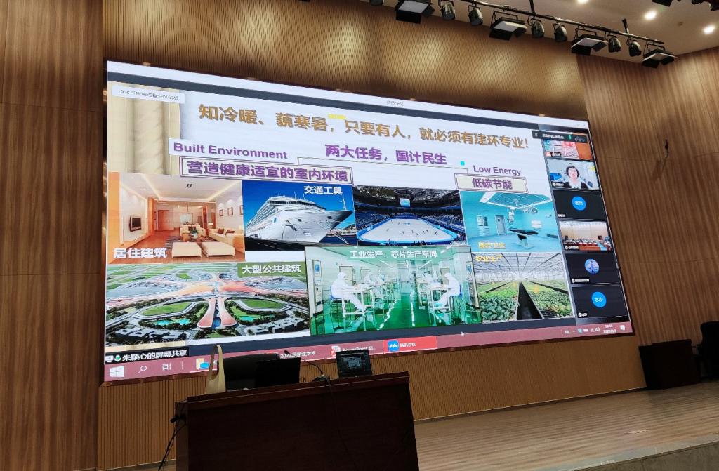 建环系邀请教育部高等学校建筑环境与能源应用工程专业分教指委主任、清华大学朱颖心教授作了题为《建筑环境营造是人类文明发展的动力》的学术报告。报告采用线上会议与线下会议两种形式相结合,会议由建环系系主任张叶主持,建环专业2022级新生、2021级学生在兴政楼报告厅线下参会,部分建环专业教师线上参会。