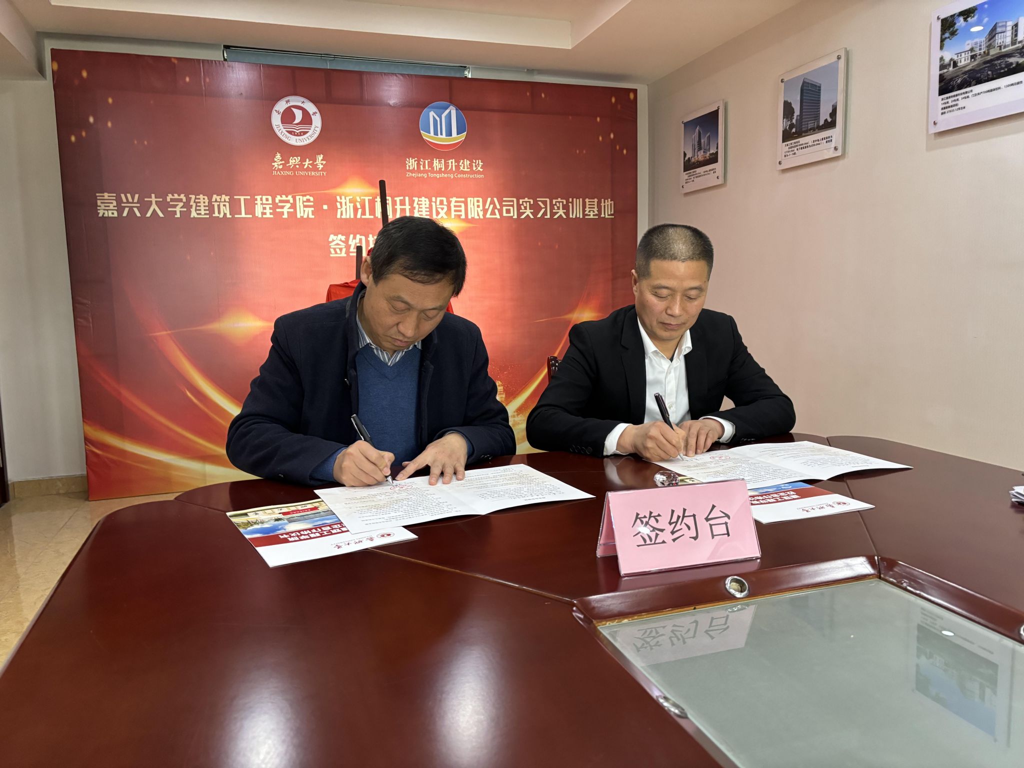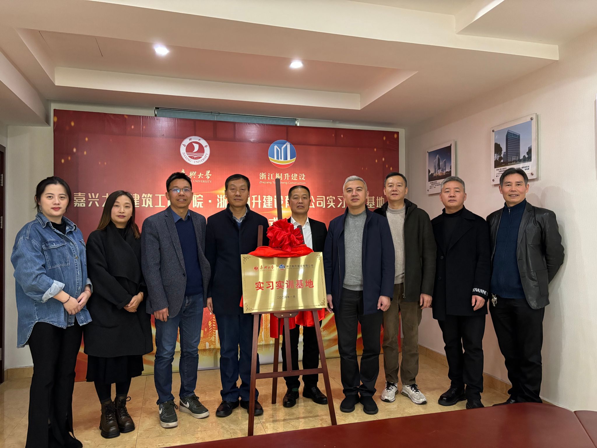 院长王恩茂、党委书记童勇军、党委副书记杨智慧一行赴桐乡市浙江桐升建设有限公司就校企合作实践基地达成协议并举行签约揭牌仪式。仪式由桐乡市住房和城乡建设局副局长何明主持。