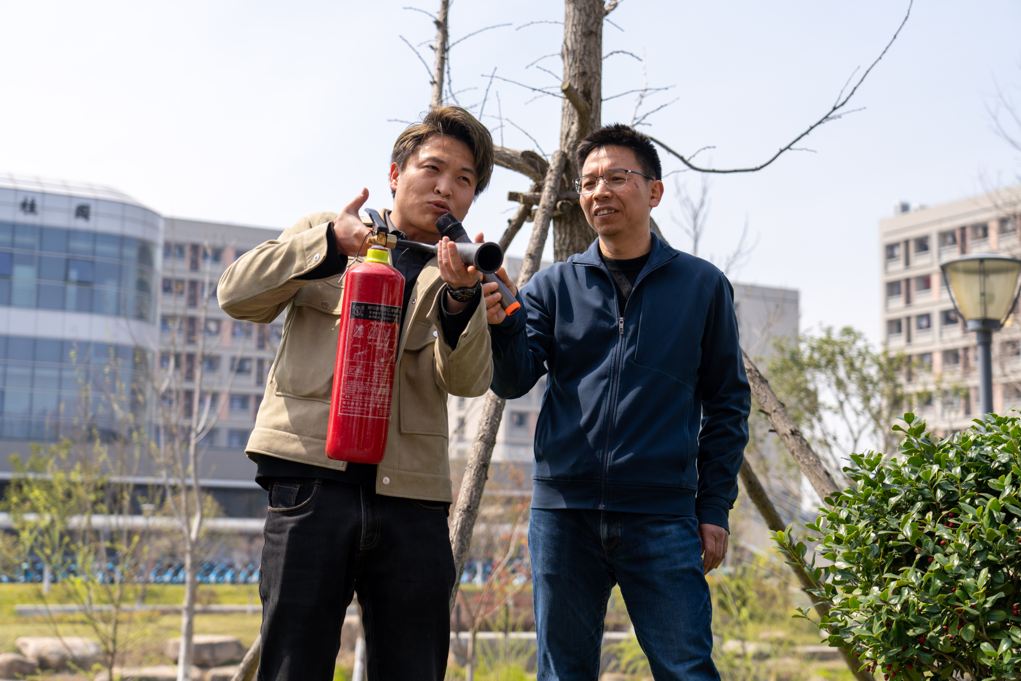 到达疏散集合点后,保卫处相关人员对疏散演练进行了点评,并为师生们讲解了灭火器相关知识,现场演示了灭火器的使用方法。最后,童勇军书记对整个活动进行了总结,强调消防安全要警钟长鸣,人人都是安全员,要求全院师生要强化安全意识,筑牢安全防线。