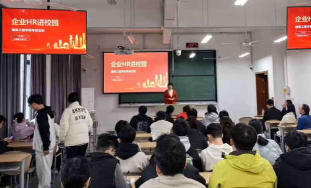 与曼瑞德集团在兴德楼北楼201开展“企业HR进校园”与“就业先锋行,企通未来”活动。曼瑞德集团董事长陈立楠、顾问张子平教授、总经理陈巍、人力资源总监陈怡策来校,行业专家与学生面对面交流,拓宽学生视野,明确未来发展方向。建工学院建环系主任张叶,副系主任谷志攀、侯景鑫,2021和2022级建环专业学生参加活动。