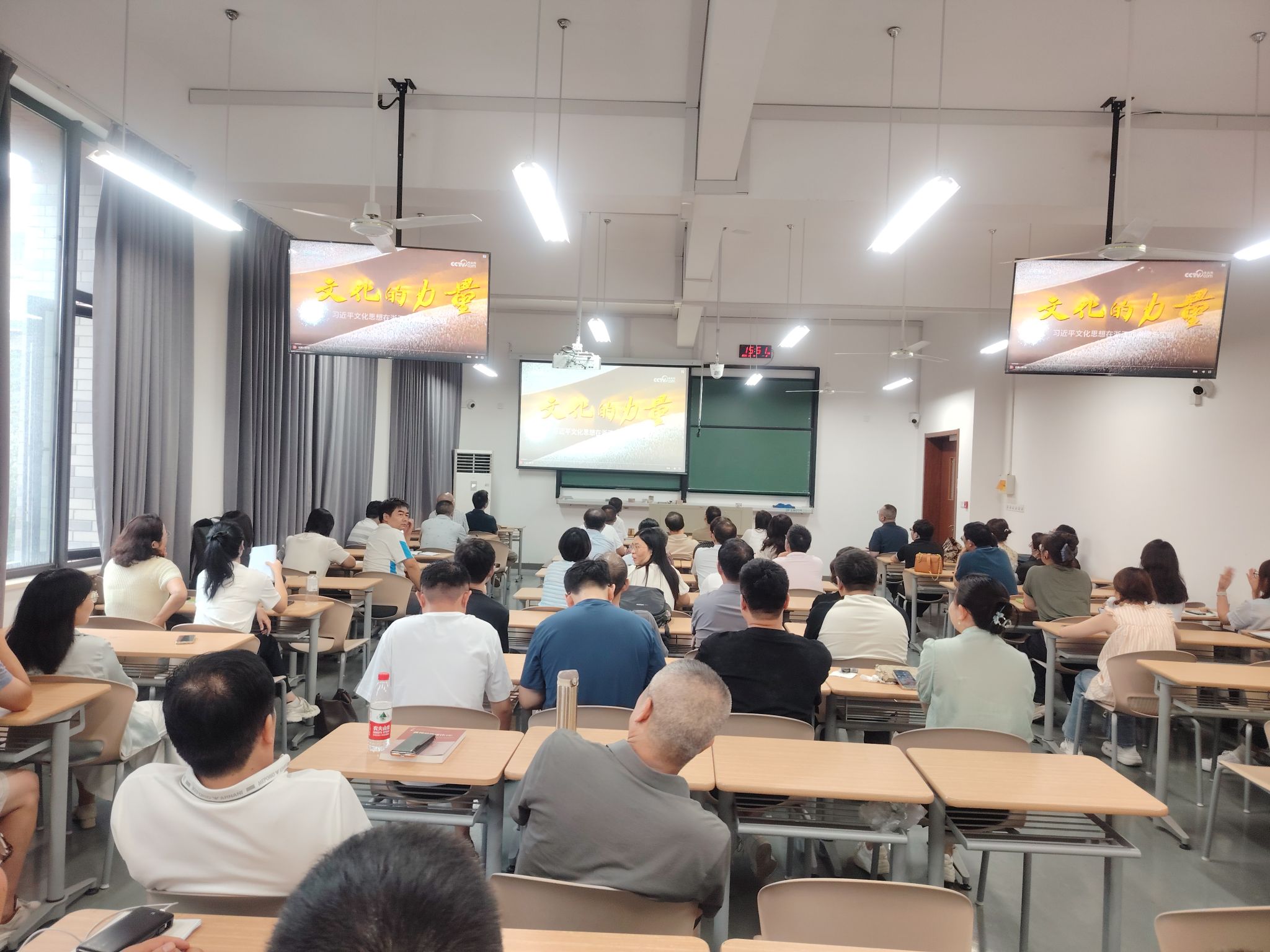 下午,学院召开全体教职工大会,重点传达了学校2025年暑期中层干部(扩大)读书会精神,同时对下半年学院重点工作进行了部署,强调了师德师风建设和安全稳定工作。会议最后,全体教职工一起收看和学习电视专题片《文化的力量——习近平文化思想在浙江的溯源与实践》,深刻领会感悟习近平文化思想的真理力量和实践伟力,增强文化自信和文化自觉,将文化力量融入到教育教学、管理和服务工作中。