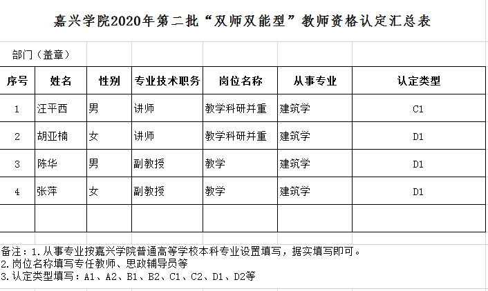 建工学院2020年第二批“双师双能型”教师认定名单公示