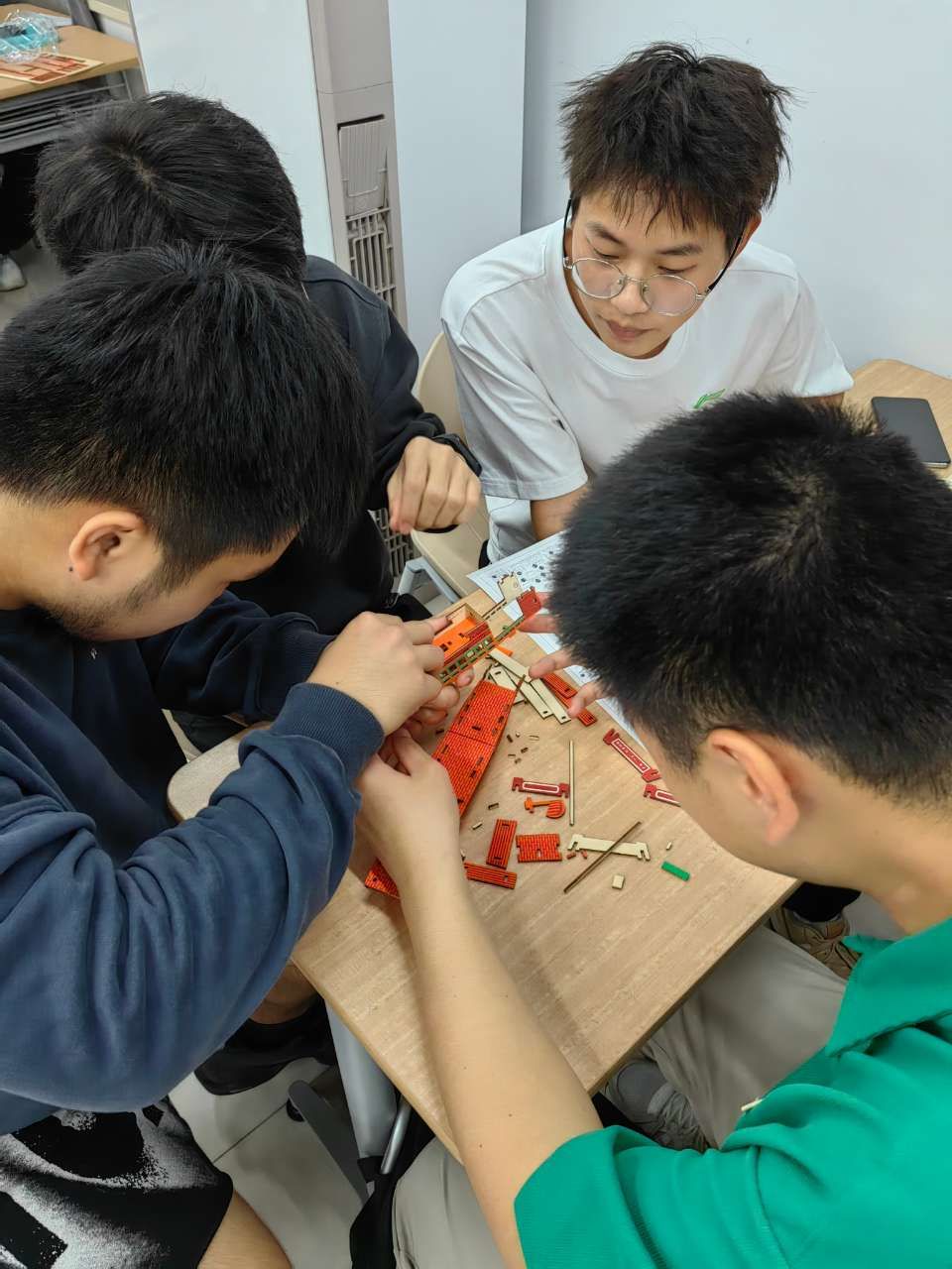 2023-2024学年第一学期业余党校学员在厚德楼151教室开展以“做红船模型,传红色精神”为主题的拼南湖红船活动,带着传承“红船精神”的信念,通过南湖红船模型制作的方式,进一步走近红船,领悟红船精神。