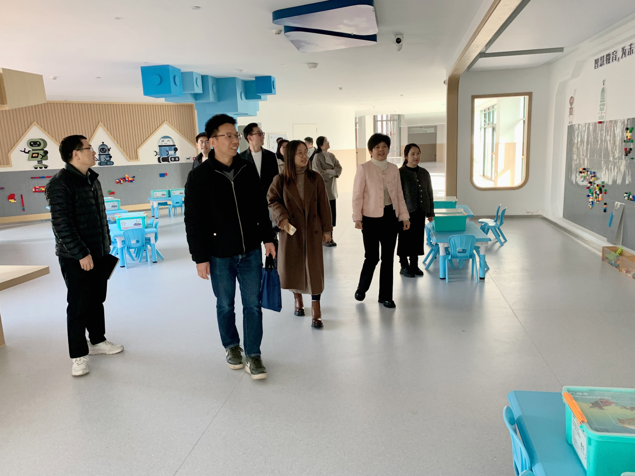 童勇军书记一行首先实地参观了文博社区党群服务中心,包含邻里中心、社区服务中心、文化礼堂、社区客厅、幸福学堂、24小时自助服务站等,并了解了未来社区的基本情况。在文博社区党总支书记徐红霞的引导下,童勇军书记一行通过未来之门参观了社区的未来展厅,观看了文博未来社区宣传片。在该展厅,文博社区以第一视角阐述了自己的前世今生、发展蝶变、主题特色、文化底蕴等内容,让大家对文博社区党群服务中心有了更深的了解。接着,到社区二楼的居家养老活动中心,徐红霞向大家介绍了幸福学堂、老年食堂、书画室、图书室、日托室、健身房、文化礼堂、舞蹈室、监控室等未来健康和治理场景中的符合辖区居民需求的具体功能室。一行人还乘坐社区微公交前往运河幼儿园、文博苑运河医站、智慧书房以及城南驿站,实地感受未来社区的完善的基础设施建设。