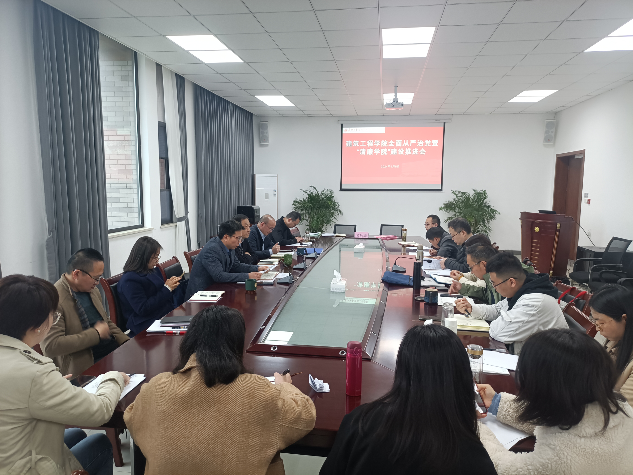 4月8日,学院召开全面从严治党暨“清廉学院”建设推进会。学院党政领导班子成员、各系部负责人参加会议。
