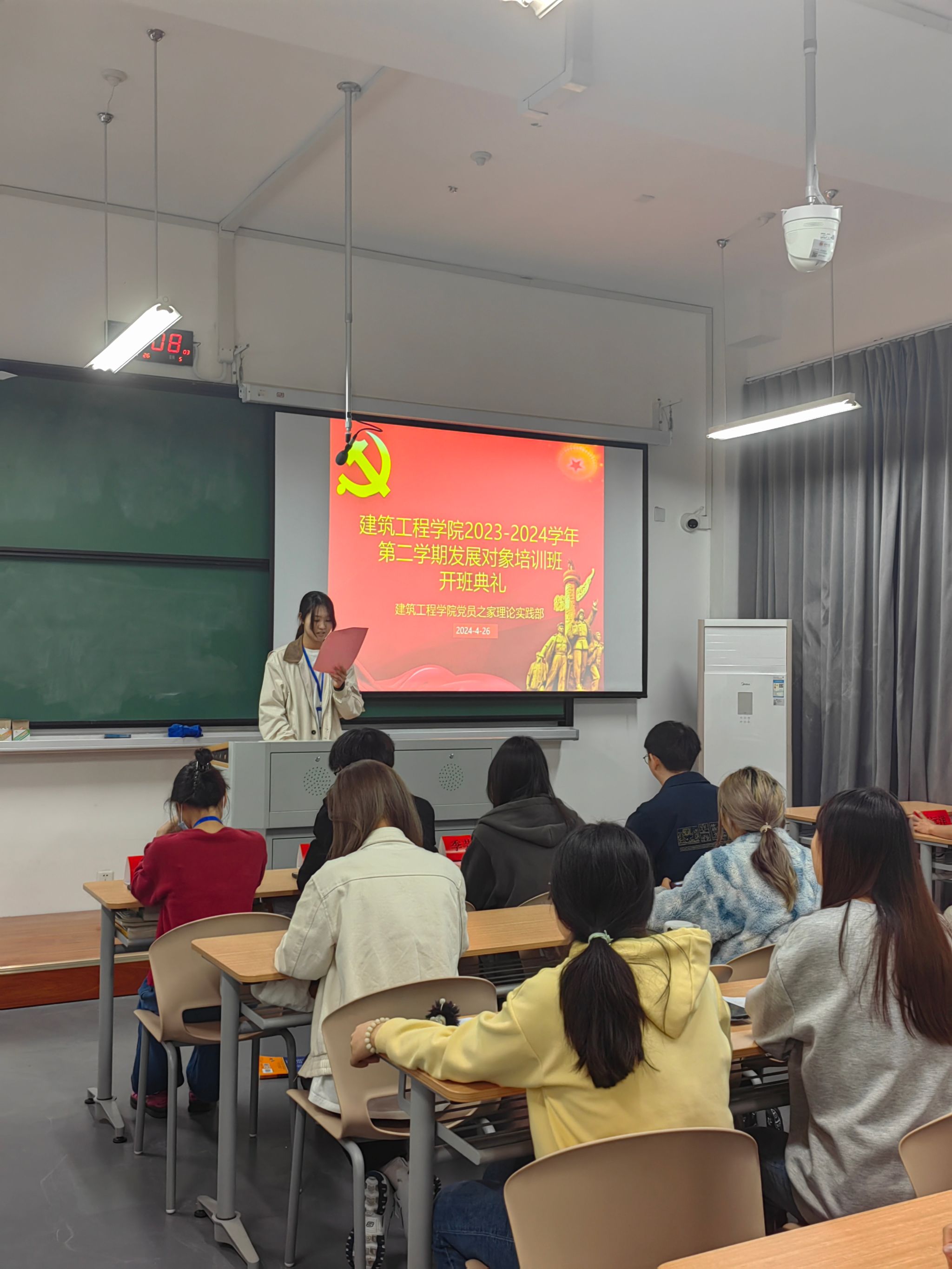 2023-2024学年第二学期发展对象培训班开班典礼在兴德楼北楼210教室顺利举行。班主任俞纪良老师、建工学院党员之家考核发展部部门主任季芸竹,理论实践部部门主任黄雨橙,骆承潼以及线上娱乐城