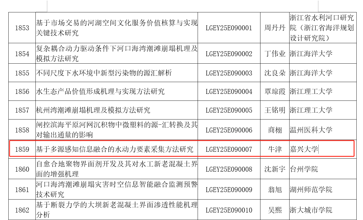 牛津博士申报的《基于多源感知信息融合的水动力要素采集方法研究》获得立项。