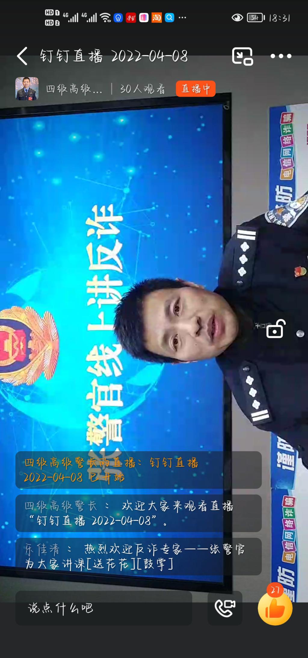 4月8日,线上娱乐城 邀请了城南派出所民警张秋江为学院网格化管理团队的学生安全委员进行反诈安全相关知识的线上直播授课。张警官针对当前疫情严峻复杂的形势,向安全委员们传授了疫情防护、防范电信网络诈骗等方面的宣传知识,内容丰富,讲解生动。为进一步发挥线上娱乐城 安全委员的宣传作用提供了重要的帮助。同学们纷纷表示,听了张警官的讲课,对安全知识有了更深入的了解,将认真学习安全知识,做安全工作的宣传者和传播者,共同守护校园平安。