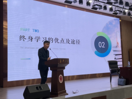 高强结合个人成长与创业经历,系统地向同学们讲述了终身学习的优点和方式、创业基础及行动等。他勉励同学们,在日新月异的当下,如果不懂的终身学习,没有创新意识,必然会被时代抛弃。他希望大家能够树立终身学习的理念,同时重视业余时间的学习;在创业时打好基础、做好准备,才能走得更长远。