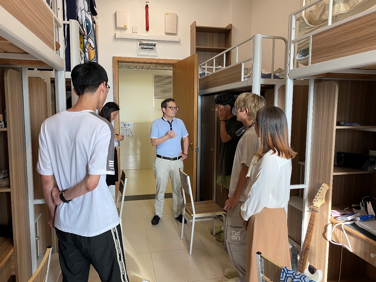 在走访过程中,周校长细致地了解新生的基本情况,亲切地询问同学们的假期生活。周校长叮嘱同学们要尽快适应大学生活,以积极的态度、崭新的面貌投入到新学期的学习与生活中来,用知识武装自己,努力学习专业知识,不负宝贵的青春年华。