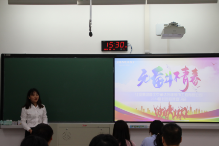 开展“无奋斗不青春”就业宣讲会。学院党委副书记杨智慧、辅导员庄峰、江河集团北京承达创建装饰工程有限公司招聘负责人夏荣荣、罗丽及部分2024届毕业生参加活动。