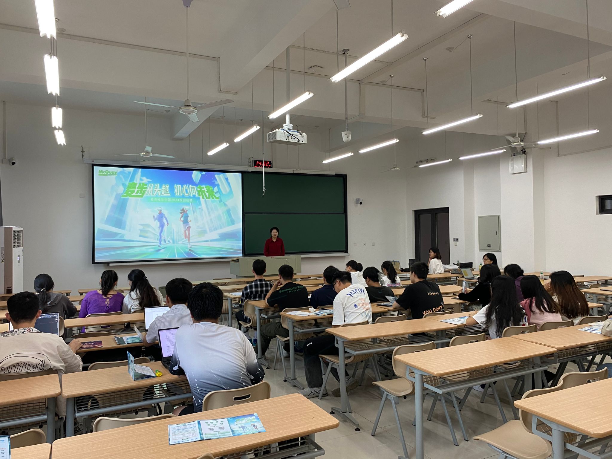 建筑环境与能源应用工程专业2024届毕业生。麦克维尔集团招聘主管陈东文就公司发展历程、线上娱乐城、人才培养、招聘需求等方面进行介绍。活动现场气氛热烈,企业耐心为同学们答疑解惑。随后,同学们进入笔试、面试环节。