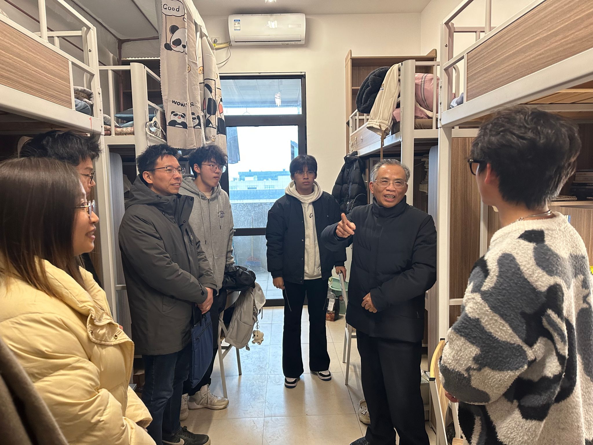 学生寝室亲切看望返校的学生,建工学院党委书记童勇军、学生处副处长马晓红、建工学院党委副书记杨智慧陪同走访。