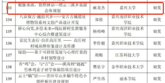 陈华、张萍两位老师指导的《根脉承流,悠然驿站—缙云三溪乡旅游总体规划》参赛项目摘得国家级银奖。