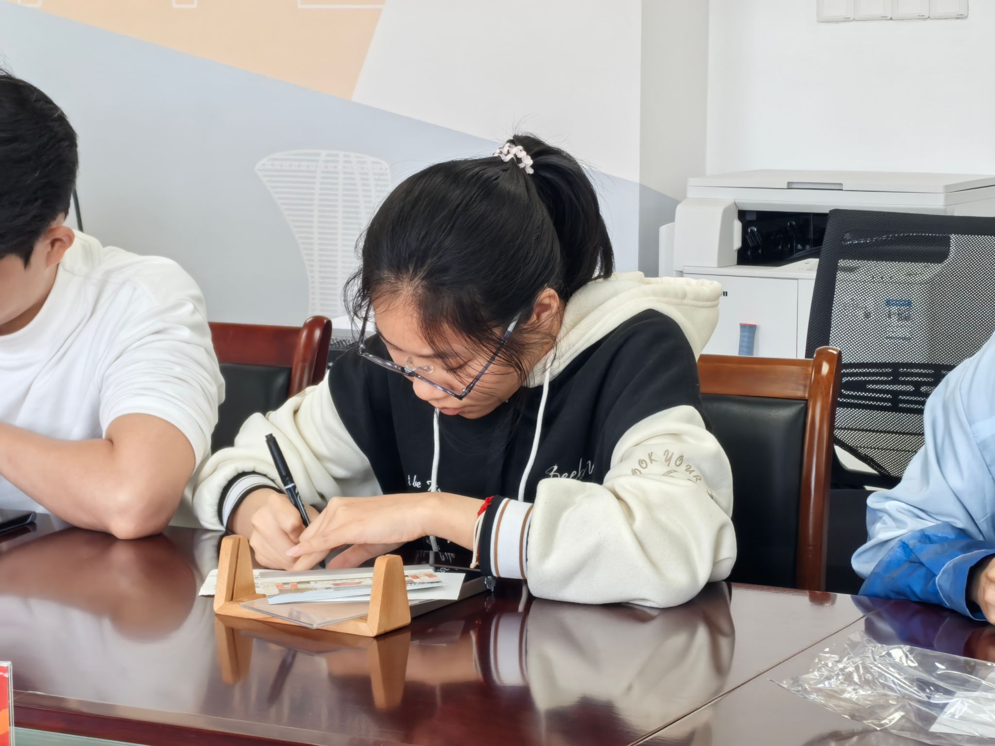 党委书记童勇军、副书记杨智慧、辅导员庄峰及10位受助学生共同参加了此次活动。而其中,学生们精心制作的感恩明信片,成为这场助学活动中最动人的一幕。