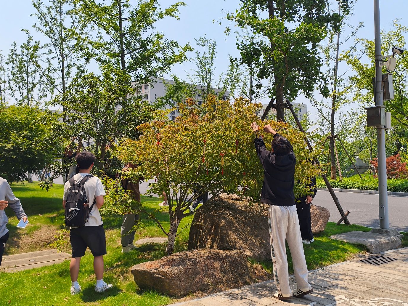 会后,一场富有意义的活动在学院门口温情展开。学生们将写有感恩、诚信、励志话语的标牌小心地系在象征感恩与诚信的树枝上,寓意着“感恩树”与“诚信树”的茁壮成长。这些标牌不仅为校园增添了一抹亮丽的色彩,更以具体而形象的方式让感恩教育深入人心,表达了学生们对未来的自强承诺与坚定信念。