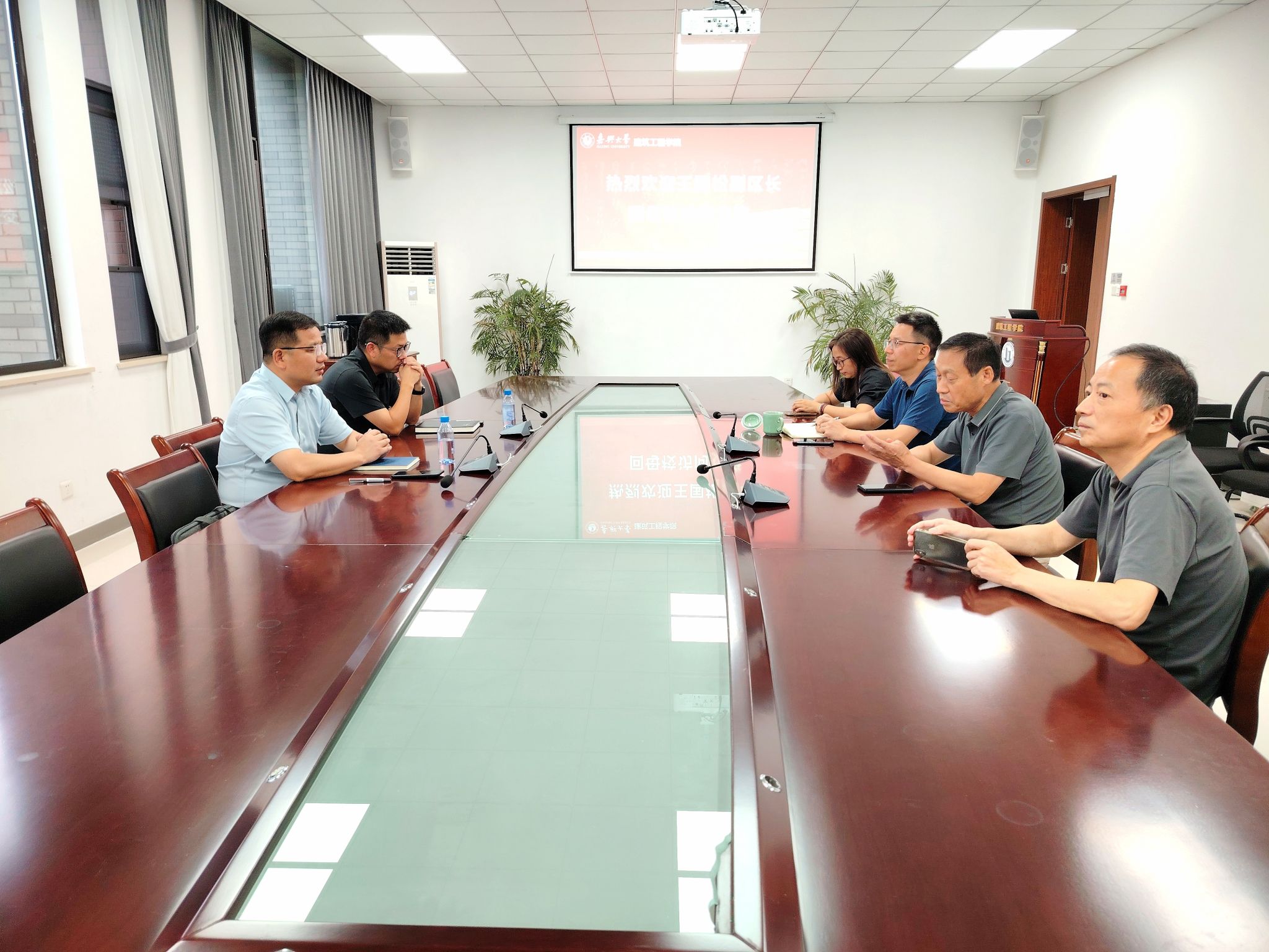 交流会上,王恩茂院长首先对校友王国松一行的到来表示热烈欢迎,并介绍了学校和学院近年来的发展情况。他强调,学院始终秉持开放合作的理念,致力于与社会各界建立广泛联系,特别是加强校友的联系与交流,探索校地合作的新模式、新路径。